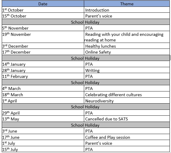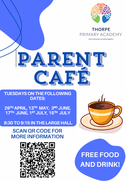 Join us at our new parent’s café for free food and drinks! It’s a great chance to chat with other parents and learn more about our school. Each week we will have a topic that parents can discuss with different members of staff in the school.